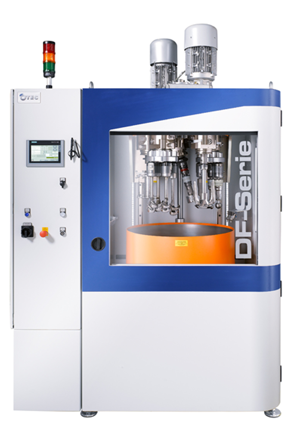 už funguje trochu jinak. Obrobky jsou jednotlivě upevněny a vlečeny vysokou rychlostí procesními médii. Tímto způsobem je dosaženo vysokého kontaktního tlaku mezi obrobky a médii, což vede k velmi efektivním výsledkům ve velice krátkém čase.